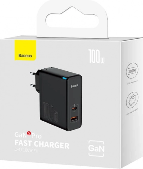 Uživajte u brzom i učinkovitom punjenju s Baseus GaN brzim punjačem. Zahvaljujući dvama priključcima USB‑C i USB‑A te snazi od 100 W, osigurava brzo punjenje za širok raspon uređaja, uključujući pametne telefone, tablete i prijenosna računala.