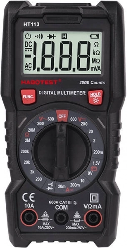 Opremlite se laganim i praktičnim digitalnim univerzalnim multimetrom Habotest HT113 koji vam omogućuje udobno i sigurno mjerenje napona, struje, otpora i mnogih drugih vrijednosti. Habotest HT113 opremljen je praktičnim stalkom pa ga možete postaviti na policu. Kućište je izrađeno od mekog materijala, ugodno je na dodir, ali i vrlo izdržljivo, otporno na trošenje i pad.