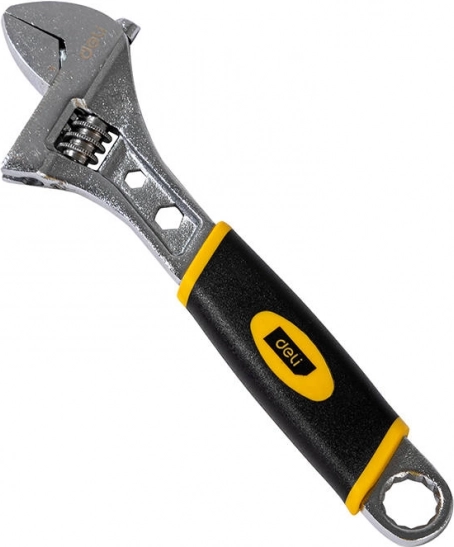 Univerzalni podesivi ključ marke Deli za precizan rad s različitim veličinama vijaka. Robusni ugljični čelik, udobna TPR drška, laserski gravirana skala i kromirana površina za otpornost na koroziju. Duljina 200 mm, maksimalni raspon 28 mm.