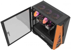 Otvarajući stakleni panel elegantno ističe vaše komponente i RGB. Praktična ručka olakšava brz pristup hardveru i održavanje.