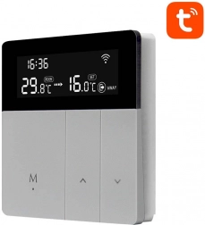 Pametni termostat AVATTO za grijanje vode olakšava vam regulaciju temperature kod kuće i u uredu. Nudi daljinsko upravljanje putem Wi‑Fi‑ja, aplikacije TUYA/Smart Life, planiranje 5+1+1 / 5+2 / 7 dana (6 režima/dan), glasovno upravljanje putem Amazon Alexe i Google Homea te pregledan LCD zaslon. Tu su i dječja zaštita te memorija postavki nakon nestanka struje.