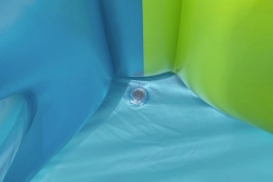 Bazen je opremljen transparentnim panelima koji omogućuju praćenje događaja unutar. U paketu se nalazi i zakrpa za eventualne popravke, što produžuje vijek trajanja bazena.