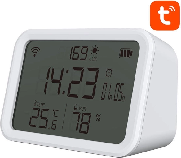 Imajte pregled klime u domu jednim pogledom. Pametni senzor NEO precizno mjeri temperaturu, vlagu i intenzitet svjetla, prikazuje podatke na velikom, čitljivom zaslonu te zahvaljujući Wi‑Fi 2,4 GHz i aplikaciji TUYA pruža podatke u stvarnom vremenu. Tu su i sat, datum te praktičan alarm.