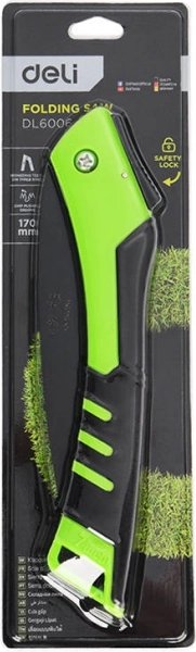 Kompaktna sklopiva pila Deli Tools za brzo rezanje drva. Zahvaljujući duljini od 170 mm lako se prenosi i uvijek je pri ruci. Nudi sigurnosnu bravu protiv nehotičnog sklapanja, izdržljivu izradu i udobnu ergonomsku ručku za siguran hvat i pri duljem radu.