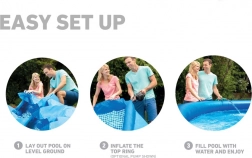 Klasik među nadzemnim bazenima. Intex Easy Set ističe se brzom i jednostavnom montažom zahvaljujući napuhavajućem gornjem obodu. Dovoljno je napuhati ga i rastući stup vode sam postavi bazen.