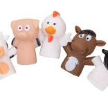 Pripremite vlastito mini-kazalište s pet slatkih životinjica za prst. Prstne lutkice od meke gume djeci se udobno stavljaju i pomažu razvijati maštu, pripovijedanje i komunikaciju. Odlične su za osmišljavanje priča, primjerice s farme.
