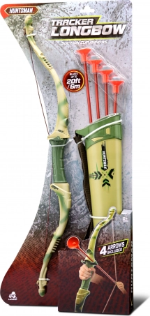 Postani mali lovac i uživaj u zabavnom gađanju s dječjim lukom Huntsman Longbow! Pakiranje sadrži 4 sigurne strijele s vakuumskim čepovima i tuljac s podesivim remenom. Luk ima pletenu tetivu, elastična krakova i domet do 6 metara. Idealno za djecu od 6 godina.