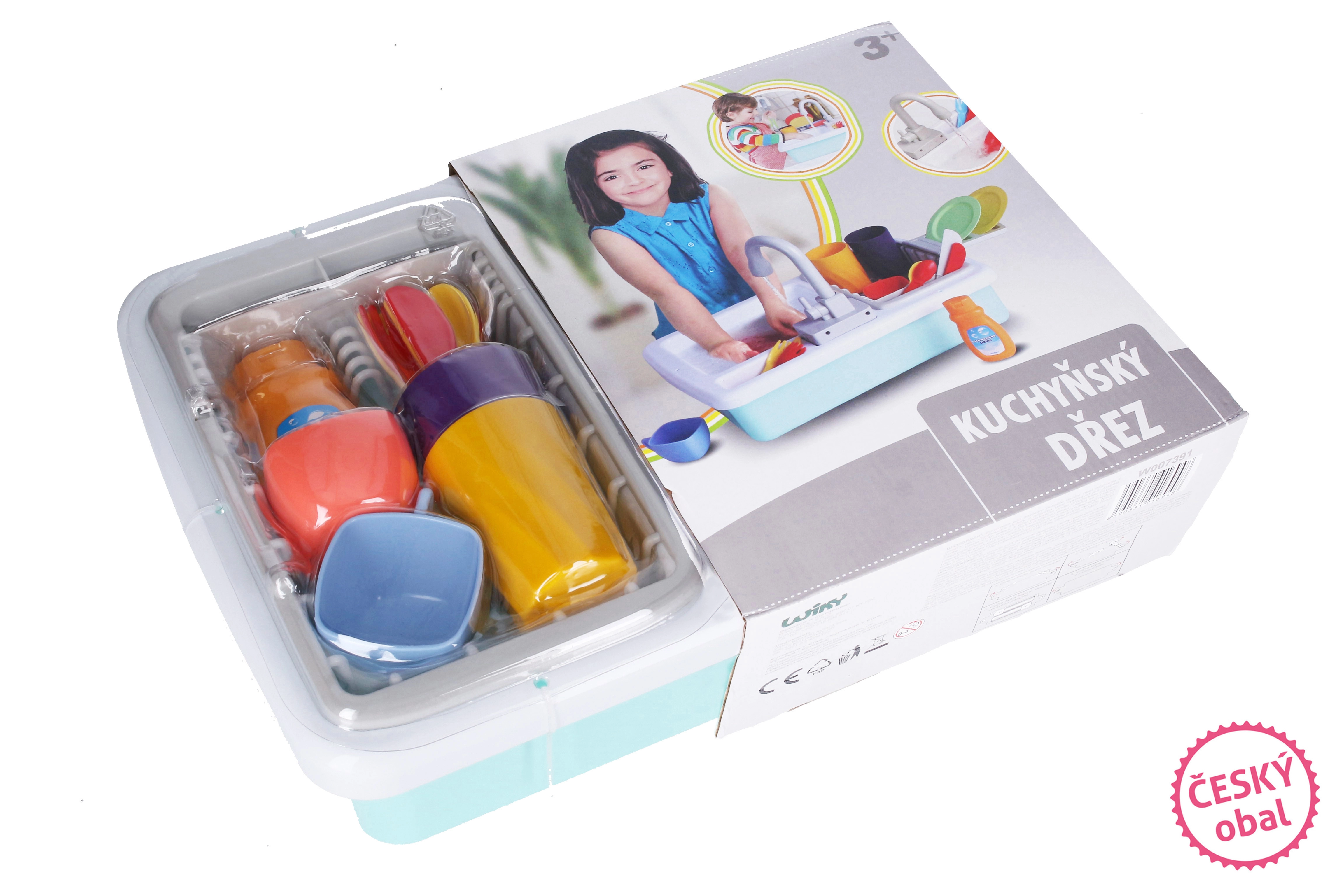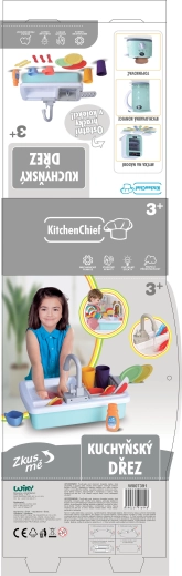 Ovaj plastični kuhinjski sudoper donosi djeci realističan doživljaj kuhanja i pospremanja. Zahvaljujući funkciji tekuće vode mali kuhari isprobat će kako se pere posuđe te istodobno vježbati koordinaciju ruku i odgovornost u kućanskim poslovima. Set je osmišljen za sigurno i dugotrajno igranje.