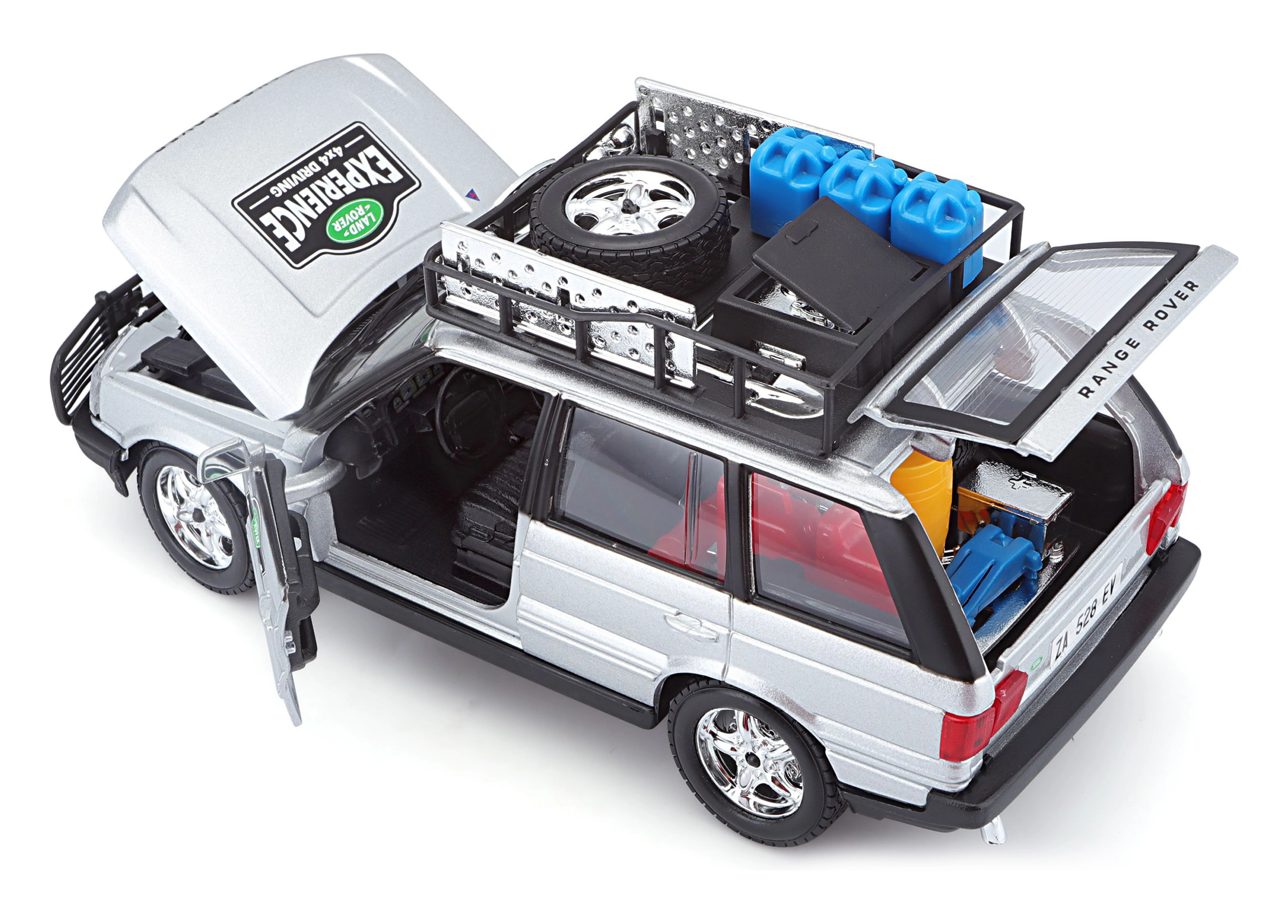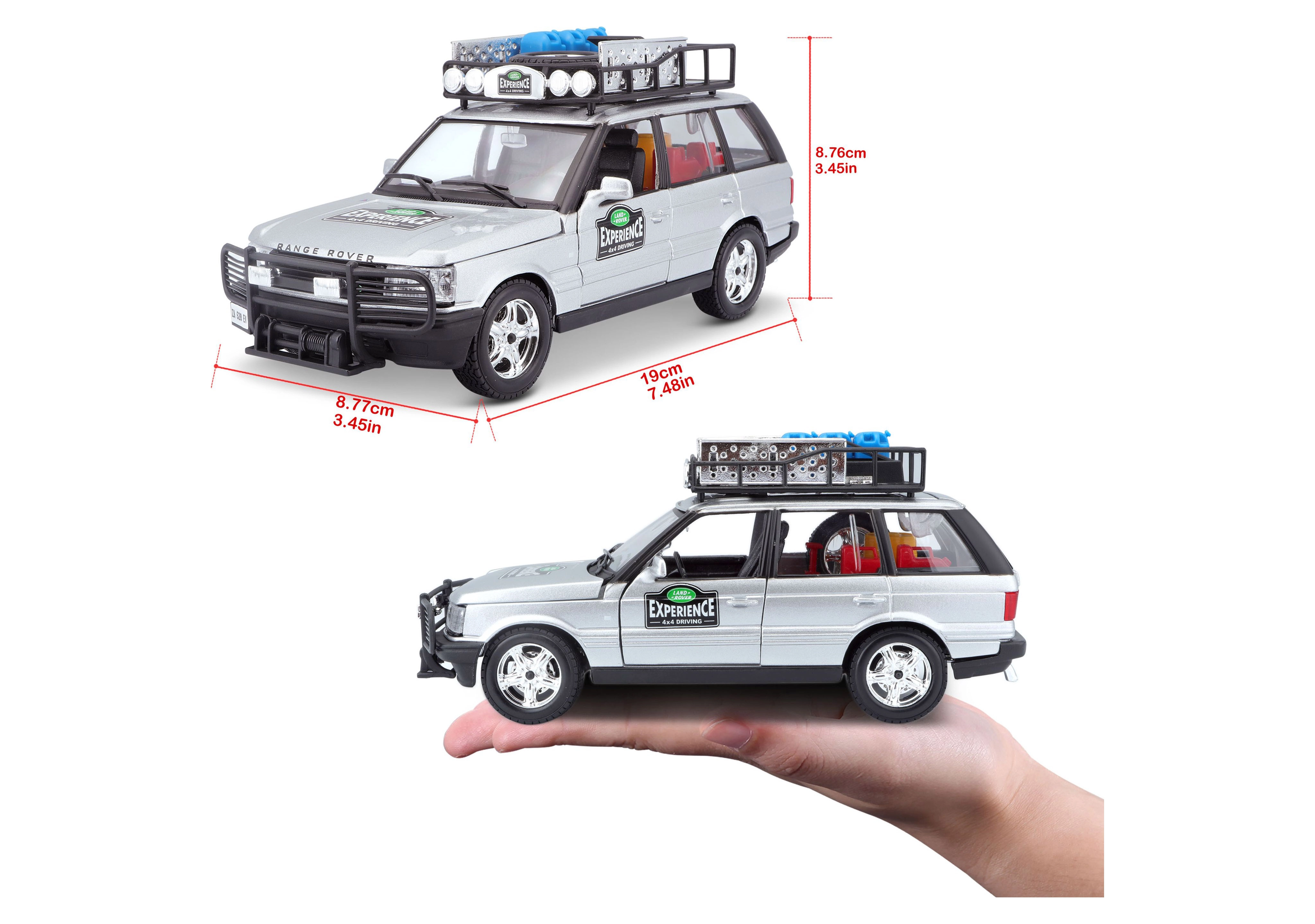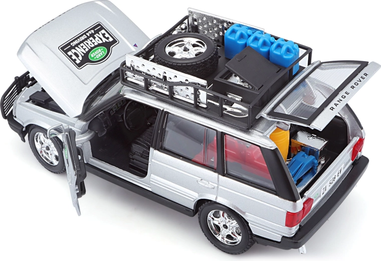 Ovaj precizno izrađen model vozila RANGE ROVER u mjerilu 1:24 donosi autentične detalje koji će razveseliti svakog ljubitelja terenskih vozila. Srebrna karoserija upotpunjena krovnim nosačem s priborom, prednjim zaštitnim okvirom i realističnim naljepnicama stvara atraktivan izgled za igru i izlaganje.
