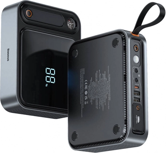 Kao snažna power banka kapaciteta 26 800 mAh (99,2 Wh) brzo će puniti prijenosnik, telefon i auto dodatke. Na raspolaganju su USB‑C s podrškom do 100 W, dva USB‑A 5 V/3 A i DC izlaz 12 V/10 A. Istodobno može napajati do 3 uređaja (kombinirana snaga do 135 W), a digitalni zaslon pregledno prikazuje stanje baterije. LED svjetiljka s načinima stalno svjetlo, SOS i treptanje povećava sigurnost u hitnim situacijama – a ugrađeni kompas olakšava orijentaciju.