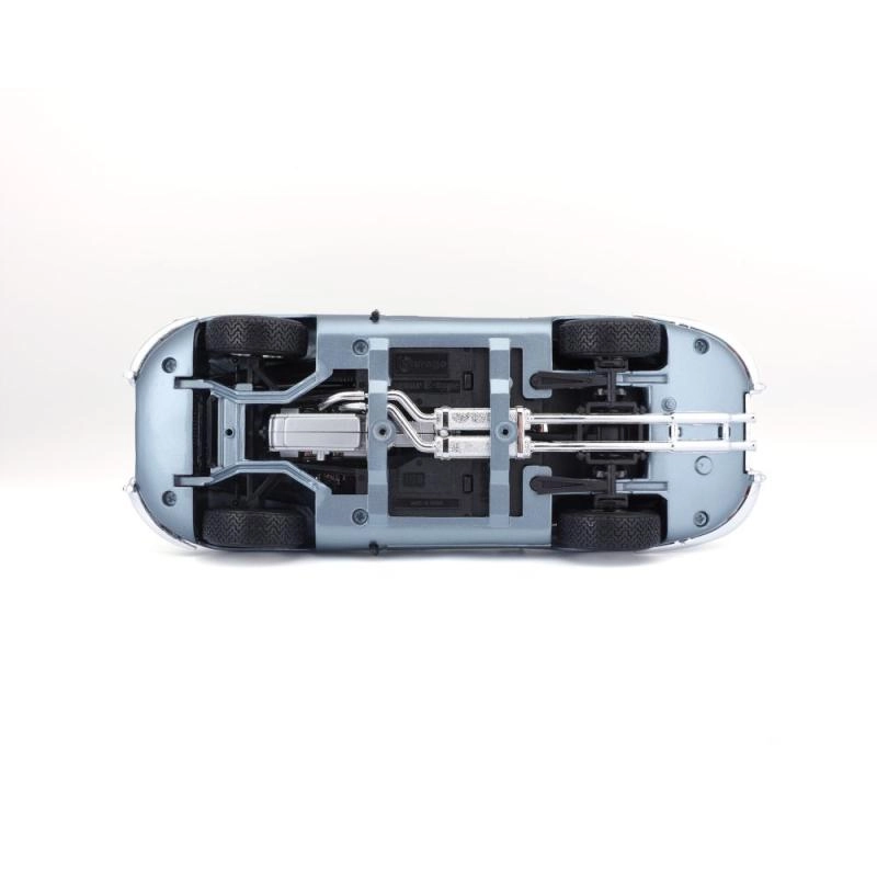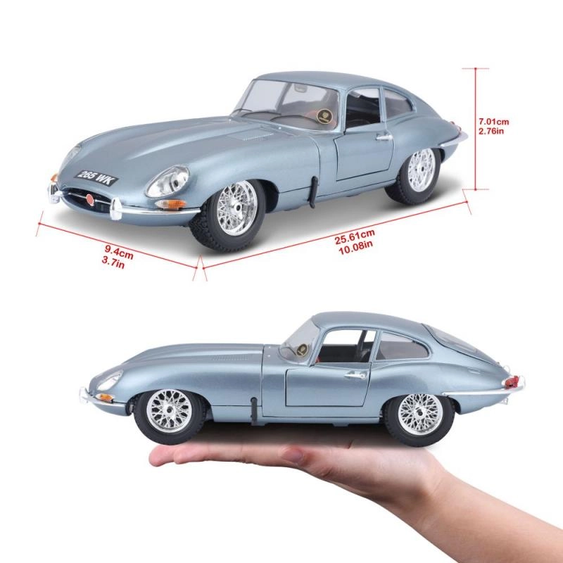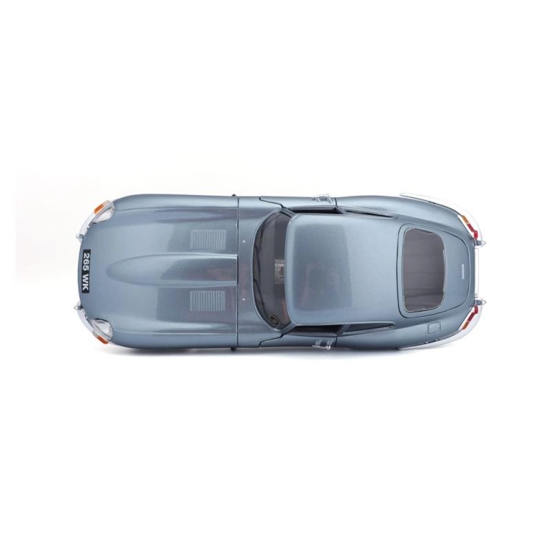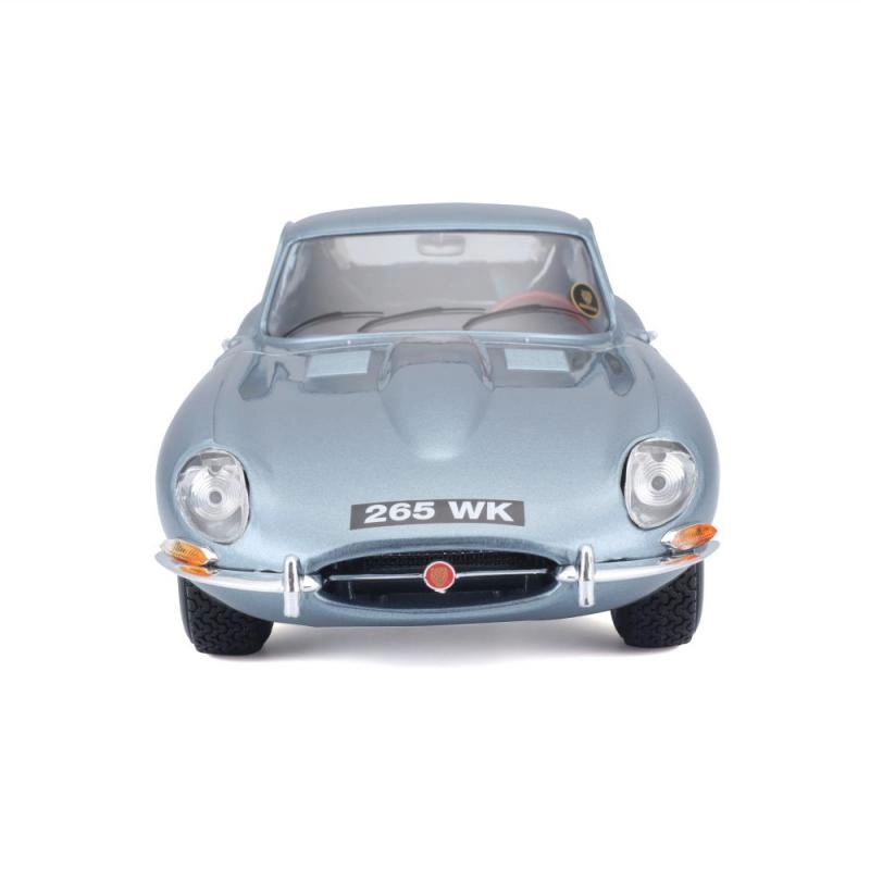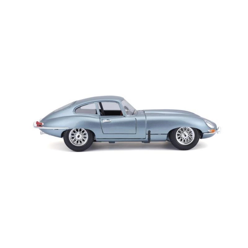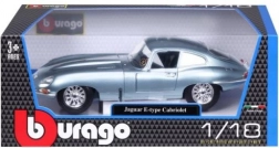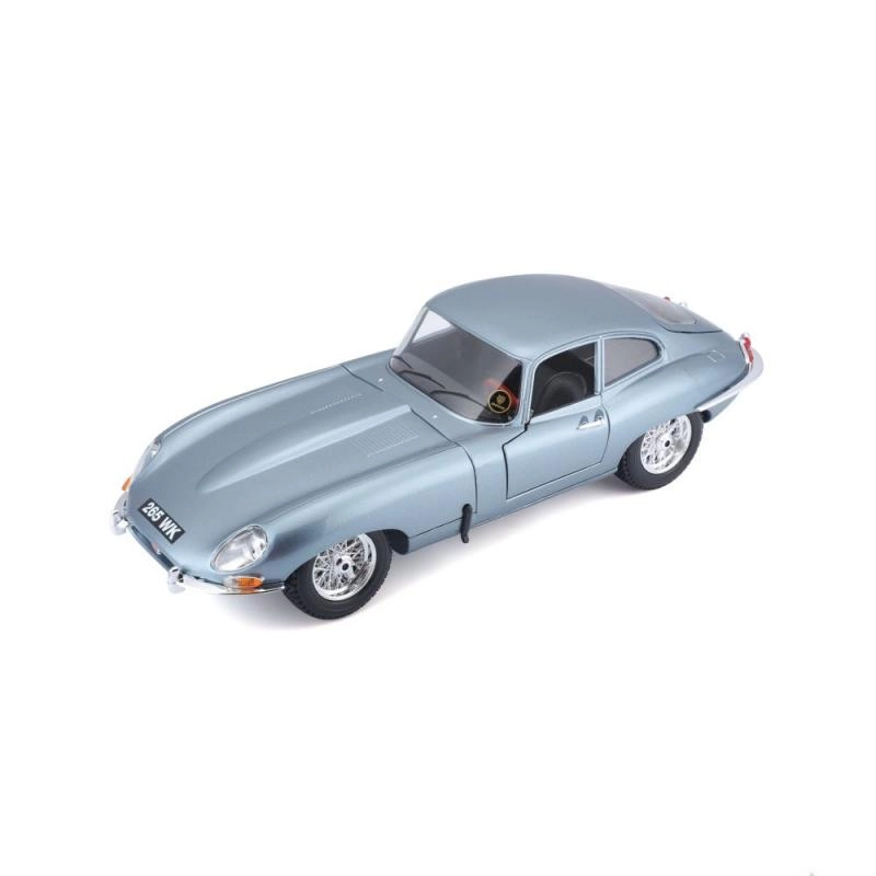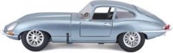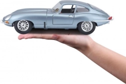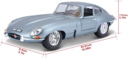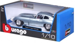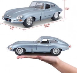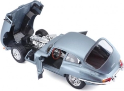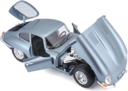 Metalni model automobila 1:18 Bburago 18-12044 Jaguar E-type Coupe, ne samo za kolekcionare. Ima otvarajuća vrata i poklopac motora, upravljanje kotačima preko volana je u potpunosti funkcionalno. Boja modela je srebrno-plava metalik.