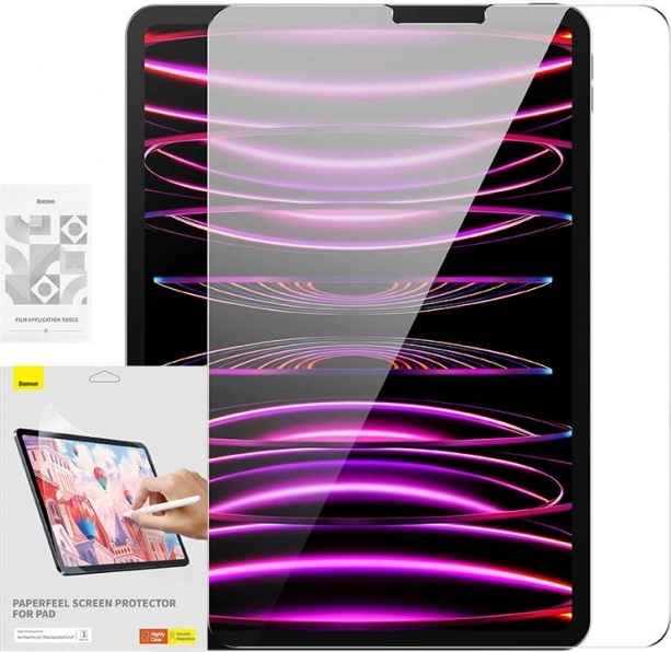 Ultra tanka zaštitna folija Baseus Paperfeel za iPad Pro 11″ (2018–2022) i iPad Air 10,9″ (Air 4/5) spaja prozirnu kvalitetu, matno smanjenje odsjaja i osjećaj papira pri pisanju i crtanju. Nudi pouzdanu zaštitu od ogrebotina, oleofobni premaz protiv masnoće i glatki odaziv na dodir i olovku.
