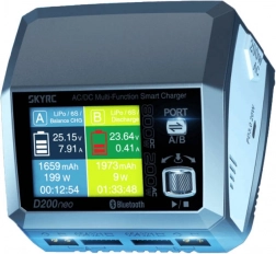 SKYRC D200neo je profesionalni dvo-kanalni punjač za RC baterije i radionu koji ubrzava vaš rad i olakšava upravljanje akumulatorima. Zahvaljujući pametnom upravljanju strujom i snagom, omogućuje paralelno punjenje dvaju paketa s iznimnom stabilnošću i preciznošću. Integrirani kolor zaslon s ColorX sučeljem znatno pojednostavljuje upravljanje i nadzor stanja.