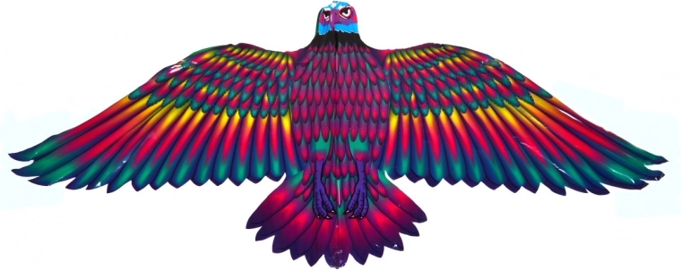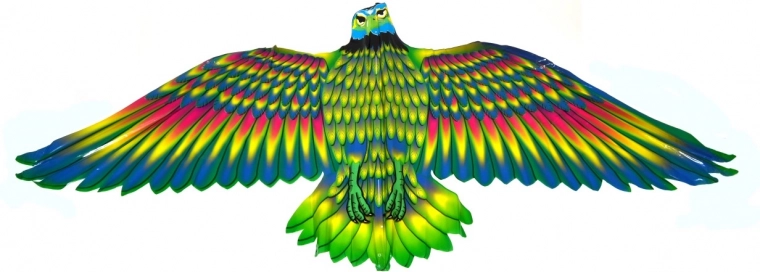 Zmaj u obliku orla ističe se izražajnim kolor tiskom i laganim platnom koje odlično hvata vjetar. Dimenzija 132 × 60 cm osigurava stabilnost i pri blagom vjetru te lako upravljanje za djecu i odrasle. Odličan izbor za zabavu na livadi, uz vodu ili u parku.