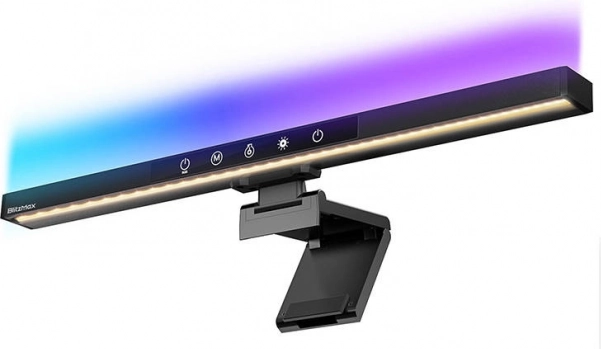 Stilska svjetiljka za monitor BLITZMAX brine o udobnom i zdravom osvjetljenju radnog stola zahvaljujući asimetričnom svjetlu bez odsjaja. Nudi RGB efekte sa sinkronizacijom s glazbom, bijelo svjetlo 3000–6000 K, 5 razina svjetline i dodirno upravljanje. Podesivi držač i kut svjetla osiguravaju idealno pokrivanje površine, napajanje putem USB-a (5 V) i memorija posljednjeg načina rada olakšavaju svakodnevnu upotrebu.