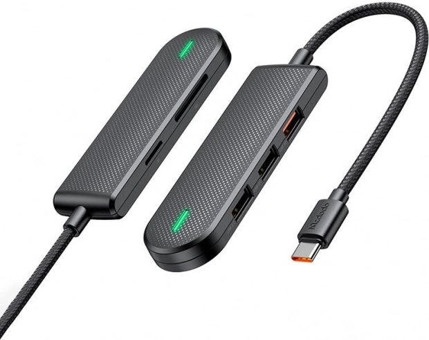 Maksimalno iskoristite mogućnosti svog uređaja s USB‑C razdjelnikom Mcdodo 5 u 1. Dobivate sve potrebno za povezivanje periferija, brz prijenos podataka i čitanje kartica. Hub je idealan za MacBook te prijenosna računala i telefone s USB‑C.