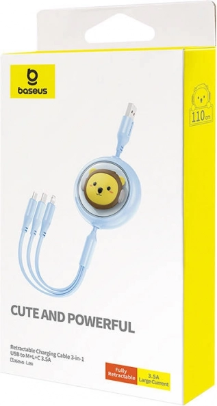Univerzalni uvlačivi 3-u-1 kabel marke BASEUS s konektorima USB‑C, micro USB i Lightning podržava brzo punjenje do 3,5 A i istodobno povezivanje više uređaja. Zahvaljujući kompaktnom mehanizmu za namatanje idealan je za putovanja, prijenos podataka odvija se brzinom 480 Mb/s, a izdržljivi materijali PC + TPE osiguravaju dug vijek trajanja.