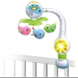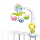 VTech pjevajući vrtuljak 3u1 svestran je pomagač za mirno uspavljivanje i zabavu na putu. Raznobojni ptići se nježno okreću te zajedno s glazbom i svjetlom stvaraju umirujuću atmosferu. Vrtuljak nudi hrvatske i slovačke melodije i uspavanke koje pomažu bebi brže zaspati i osjećati se sigurno.