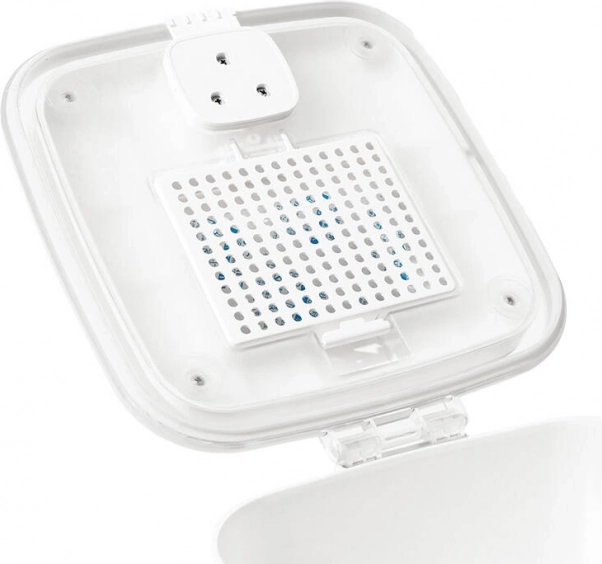Za maksimalnu svježinu kombinira silikonske brtvene elemente, automatsko zatvaranje izlaza i osuševač. Konstrukcija sprječava začepljenje granula do 16 mm, a zdjelica s nagibom od 7° olakšava uzimanje hrane. Dozirnik se može napajati iz mreže ili 4× AA baterijama te podržava offline doziranje pri nestanku struje ili interneta.