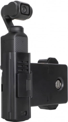 Držač je dizajniran za savršeno usklađivanje s Osmo Pocket 3, izdržljiv je, izrađen od plastike i silikona, te se fleksibilno prilagođava različitim veličinama telefona. S podešavanjem od 62 do 100 mm, kompatibilan je s većinom modela telefona i ima ulaz za standardni 1/4" vijak za montažnu dodatnu opremu.
