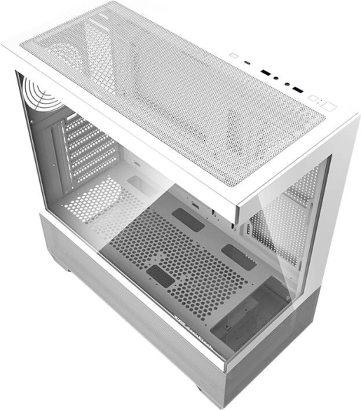 DARKFLASH DS900 Air elegantan je midi tower u bijeloj boji s prednjim i lijevim panelom od kaljenog stakla koji će istaknuti vaš sustav. Zahvaljujući promišljenom strujanju zraka, perforacijama i podršci za do 7 ventilatora, lako ćete održavati niske temperature i kod snažnih komponenti. Stabilne trapezoidne nožice s prigušnim podloškama minimaliziraju vibracije i poboljšavaju udobnost rada.