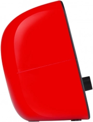 Praktično podešavanje glasnoće putem ugrađenog okret nog gumba i univerzalnog 3,5 mm AUX ulaza za telefon, tablet ili MP3 reproduktor osigurava udobnu svakodnevnu uporabu. Stilsko crveno-crno kućište s kompaktnim dimenzijama pristaje na svaki radni stol.