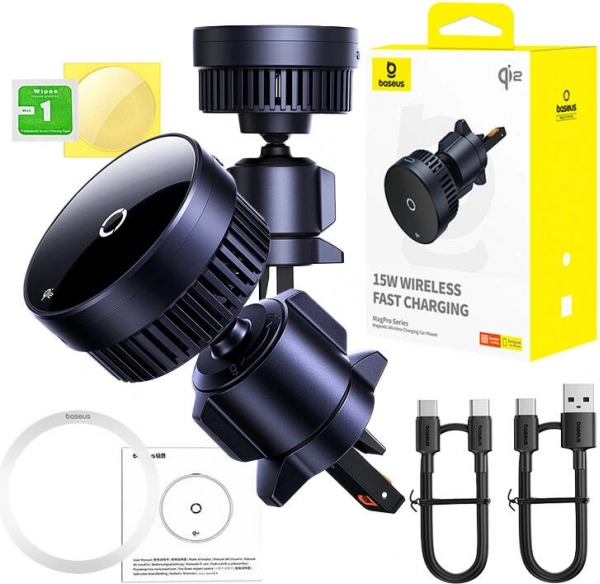 - držač za automobil, magnetski prsten, kabel USB-A–USB-C, kabel USB-C–USB-C, maramica s alkoholom, antistatička naljepnica, korisnički priručnik