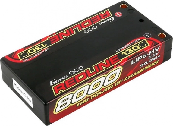 Lipo baterija Gens Ace Redline dizajnirana je za visoke performanse i pouzdanost, kako bi zadovoljila očekivanja i najzahtjevnijih korisnika. S kapacitetom od 8000mAh i naponom od 3,8V postiže brzinu pražnjenja 130C.