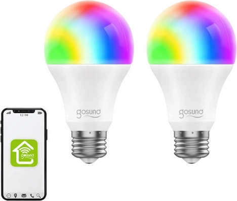 Pametne Wi‑Fi RGB LED žarulje GOSUND WB4 E27 (2 kom): 16 milijuna boja, 2700–6500 K, 800 lm, 8 W, upravljanje u Tuya aplikaciji, Alexa i Google Assistant.