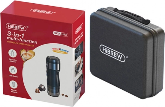 Uživajte u svojoj omiljenoj kavi gdje god želite zahvaljujući kompaktnom aparatu HiBREW H4A. Nudi 3 u 1 pripremu (mljevena kava, Nespresso, Dolce Gusto), tlak od 15 bara za puni okus, podešavanje vremena ekstrakcije i temperature te više opcija napajanja. U pakiranju se nalaze putni etui, šalica i adapteri – idealno za putovanja, posao i kampiranje.