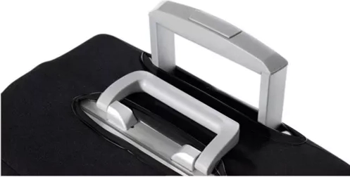 Zahvaljujući preciznim otvorima za gornje i bočne ručke te teleskopsku dršku kofer možete koristiti bez skidanja navlake. Crna boja djeluje elegantno i ujedno olakšava personalizaciju i brzo prepoznavanje na traci. Prikladno za srednje kofere veličine L u rasponu 67–70 × 45–50 × 26–30 cm.