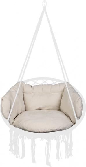 Jastuk se sastoji od četiri međusobno povezana dijela (sjedalo, naslon i dva bočna elementa) i izrađen je od visokokvalitetnih materijala koji jamče njegovu trajnost i otpornost na trošenje. Meko punjenje osigurava da je metalna struktura ljuljačke gotovo neprimjetna, omogućujući vam potpuni odmor.