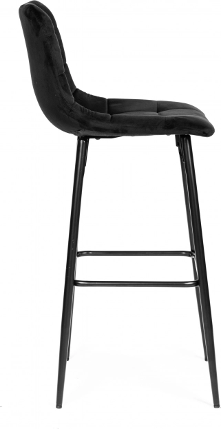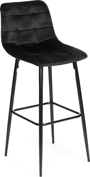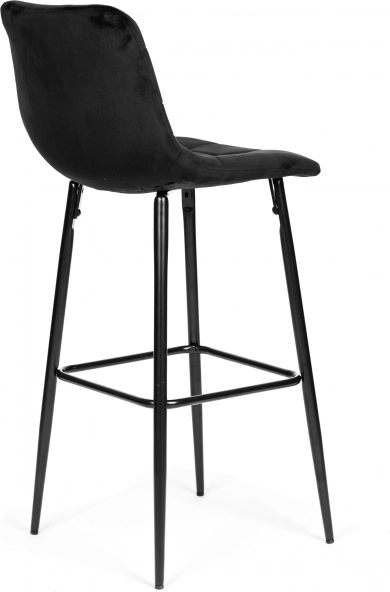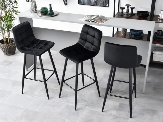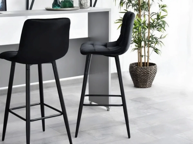 Moderna barska stolica u elegantnoj crnoj boji idealan je dodatak kuhinjskim otocima, visokim stolovima ili barovima. Kombinira stabilnu metalnu konstrukciju i udobno prošiveno baršunasto sjedalo, što je čini savršenim izborom za moderne i klasične interijere.