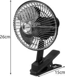 Ventilator je opremljen snažnim klipsom, koji osigurava jednostavno pričvršćivanje na različite površine, čime je idealan za upotrebu u vozilima.