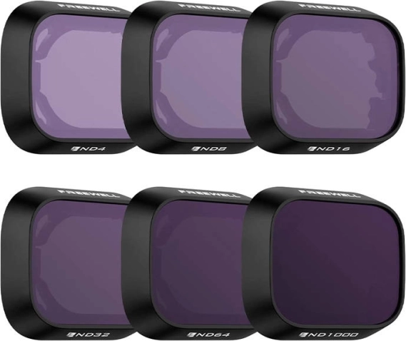 Raspon ND filtera od ND4 do ND1000 (10 EV) pokriva većinu situacija: od blagoga prigušenja svjetla za oblačnog vremena do iznimno jakih uvjeta uz vodu ili na snijegu. Filteri teže samo 0,7 g, stoga ne utječu na balans drona. Posebni višeslojni premazi su otporni na ogrebotine, prašinu i masnoću, zbog čega je čišćenje brzo, a slika ostaje kristalno čista.