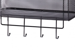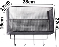 Ova metalna viseća košara nije samo praktična, već i stilska. Prostrana je i omogućuje pohranu raznih predmeta, od kuhinjskih dodataka do toaletnih potrepština. 4 dodatne kuke možete koristiti za vješanje ključeva, ručnika ili torbi.
