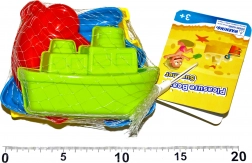 Otkrijte beskrajnu zabavu na pijesku sa setom kalupa koji uključuje brodić, auto, vlak i raketu. Idealno za male graditelje i kreativne igrače.