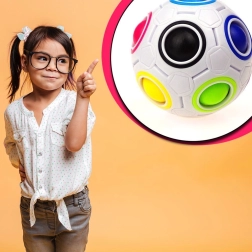 Zagonetna kugla Rainbow Ball pametna je i zarazna igračka koja funkcionira na principu kliznih zagonetki. Vaš je zadatak pomicati kuglice između otvora i posložiti ih prema obojenim prstenovima. Jedan otvor bez obojenog prstena ostaje prazan i služi kao privremeno mjesto za premještanje.