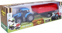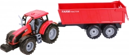 Moćan traktor s prikolicom duljine 42 cm, idealan za male poljoprivrednike. Pogon na zamašnjak i otvarajući stražnji dio prikolice donose radost i realističnu igru.