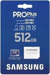Memorijska kartica Samsung Pro Plus microSDXC 512GB pruža snažan alat za pohranu i prijenos podataka s brzinom čitanja do 180 MB/s i zapisivanja 130 MB/s. Idealna je za rad s velikim multimedijskim datotekama i snimanje videa u 4K rezoluciji.