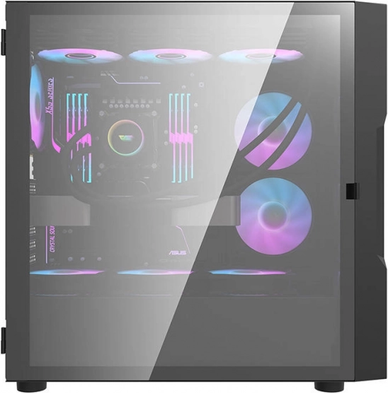 Radunalo kudi3te Darkflash DK431 Glass omogućuje vam stvaranje privlačne i funkcionalne računalne jedinice. Otvoreni paneli, uključujući bočne od kaljenog stakla, otkrivaju unutarnje komponente, dok ugrađeni RGB ventilatori osiguravaju optimalno hlađenje.