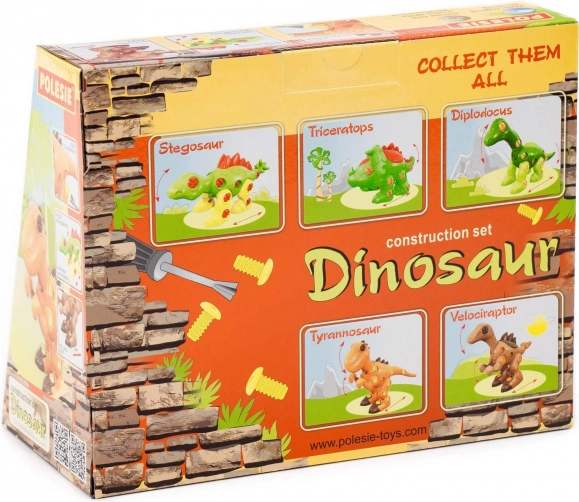 Za male istraživače predstavljamo seriju konstrukcijskih setova u obliku dinosaura - Tiranosaurus, Stegosaurus, Triceratops, Diplodokus i Velociraptor. Igračke su izrađene u prirodnim bojama, od kvalitetnog materijala i imaju zaobljen oblik. Svi dijelovi igračke izvedeni su kao konstrukcijski set i povezani plastičnim vijcima. Set sadrži i križni odvijač koji omogućuje da se model lako rastavi i ponovno sastavi, što ga čini još zanimljivijim. Igra s ovim setom djetetu pruža prve iskustvene korake i vještine u modeliranju i dizajnu, a ujedno razvija maštu i finu motoriku.