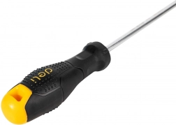 Ravni odvijač s utorom od DELI‑ja pouzdan je pomoćnik za montažu, popravke i finije radove. Vrat od izdržljivog krom‑vanadijevog čelika (CR‑V) osigurava dug vijek trajanja i precizan prijenos sile, dok PP ručka pruža siguran i udoban hvat.