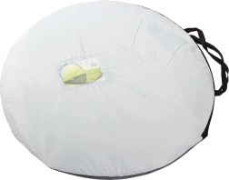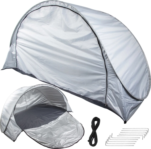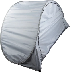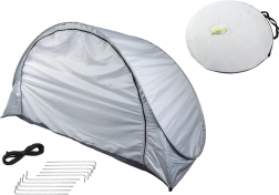 Samorazvijajući plažni šator u elegantnoj sivoj boji osigurava ugodnu sjenu i privatnost tijekom vrućih dana. Zahvaljujući pametnom mehanizmu rasklapa se gotovo trenutačno, pa više vremena možete posvetiti odmoru. Materijal s UV zaštitom pomaže smanjiti utjecaj sunčevog zračenja, dok aerodinamičan oblik bolje odolijeva vjetru.