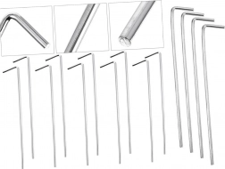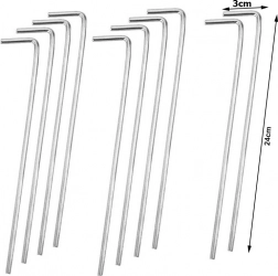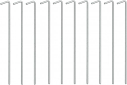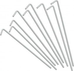 Praktičan set od 10 čeličnih klinova s L završetkom idealan je za kampiranje, vrt i planinarenje. Zahvaljujući promjeru od 4 mm i duljini od 24 cm, klinovi sigurno drže u travi, zemlji pa čak i šljunku te sprječavaju otpuštanje užadi ili traka. Jednostavan oblik omogućuje brzo zabijanje i izvlačenje.