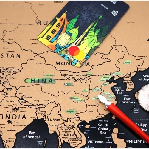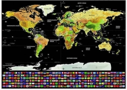 Svjetska karta za grebanje idealna je za putnike koji žele pratiti svoja putovanja i istodobno imati stilsku dekoraciju. Grebanjem otkrivate šarene zastave i detalje pojedinih zemalja. Paket uključuje 3 načina izložbe karte - na zidu, na plutanoj tabli ili u okviru.