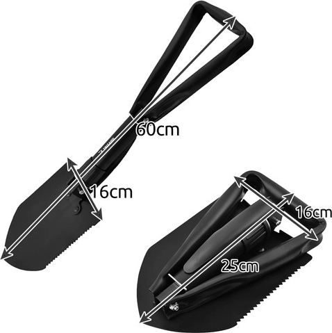 Sklopiva vojna lopata Trizand je višenamjenski alat koji kombinira funkcije lopate, pile i krampa. Lako prijenosna zahvaljujući sklopivoj konstrukciji - idealna za vanjske ekspedicije, kampiranje, planinarenje, preživljavanje ili svakodnevne vrtne zadatke.