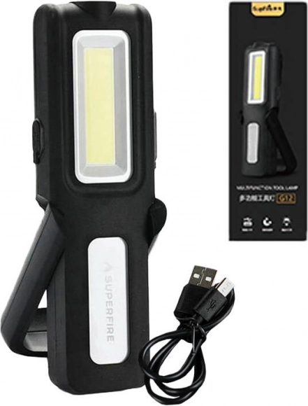 Radna svjetiljka Superfire G12 nudi dva izvora svjetla – glavnu lampu i gornji LED reflektor, zbog čega je idealna za unutarnju i vanjsku uporabu. Nadalje, dolazi s velikim kapacitetom baterije od 1200 mAh koju je moguće puniti putem micro USB‑a.