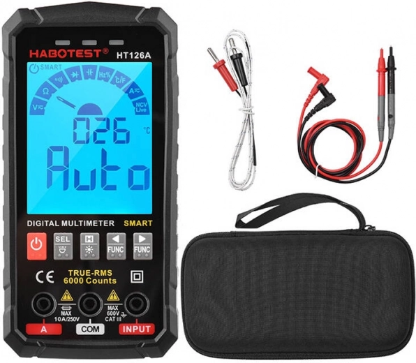 Digitalni multimetar Habotest HT126A dizajniran je za precizna mjerenja i jednostavnu upotrebu. Opremljen je velikim LCD zaslonom koji omogućuje brz pristup svim potrebnim informacijama o mjerenju. Zahvaljujući kompaktnim dimenzijama i laganoj konstrukciji idealan je za prenošenje.