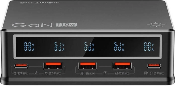 Tražite univerzalan i pouzdan izvor energije za više uređaja? Stolni punjač BlitzWolf snage 110 W spaja vrhunsku učinkovitost, široku kompatibilnost i sigurnost. Pet izlaza (3× USB‑A, 2× USB‑C) omogućuje punjenje telefona, tableta, slušalica i prijenosnog računala istovremeno – bez kompromisa u brzini.